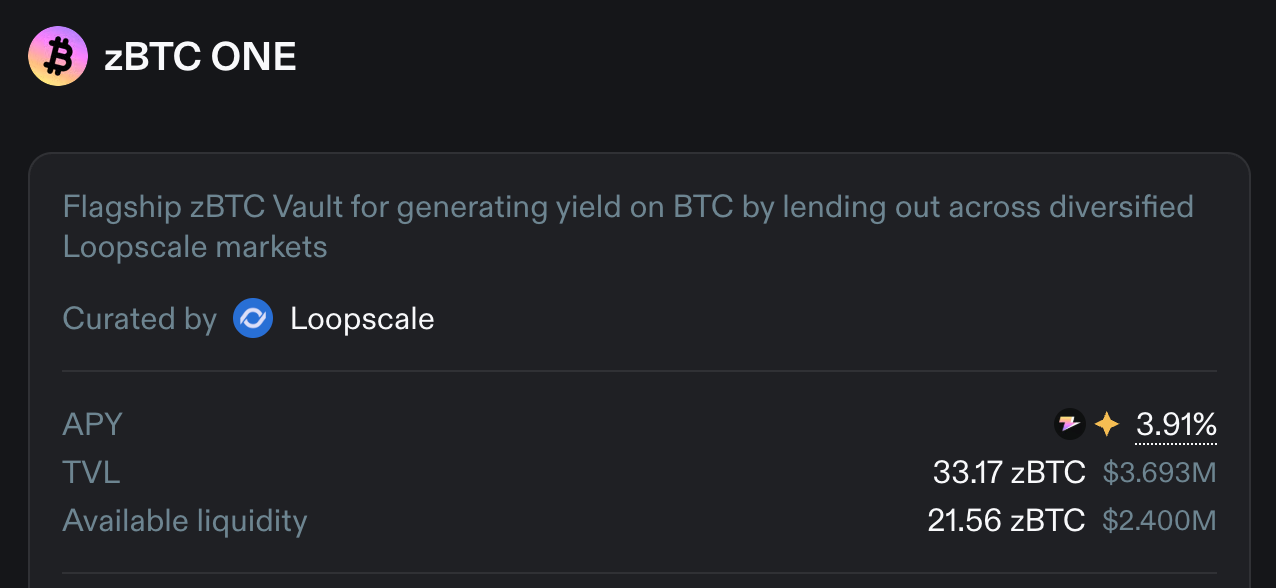 By supplying $10,000 in USDC to earn 7.3% and borrowing $6,667 in zBTC at a low 0.17% cost, then depositing that zBTC into a vault yielding 4.1%, users can generate a total net return of $992.02 annually, translating to an effective APY of 9.92% on the original $10,000.